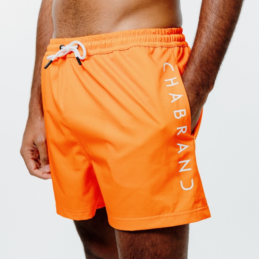 SHORT DE BAIN LOGO VERTICAL CHABRAND ORANGE est une pièce pensée pour allier style, confort et aisance pendant les journées chaudes.